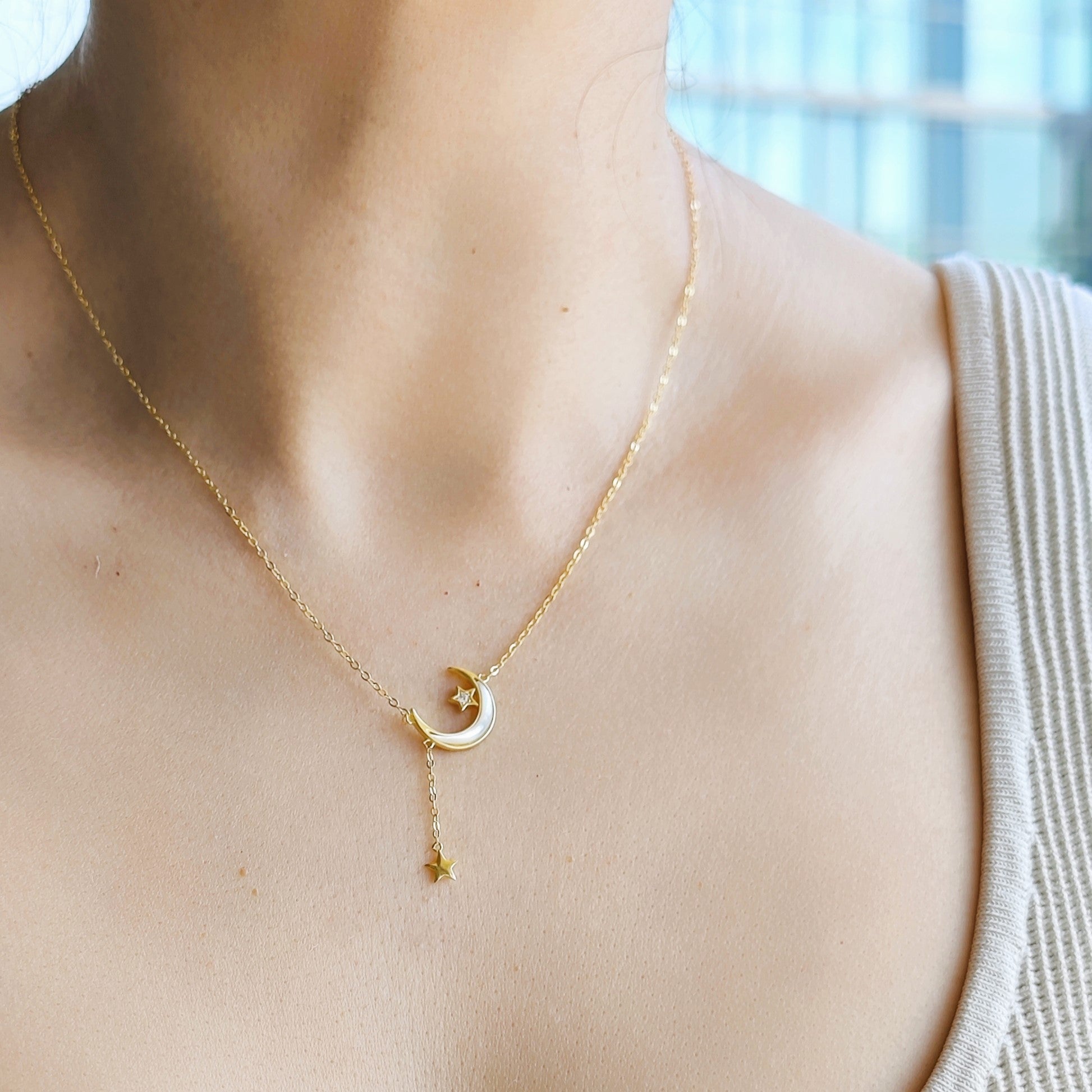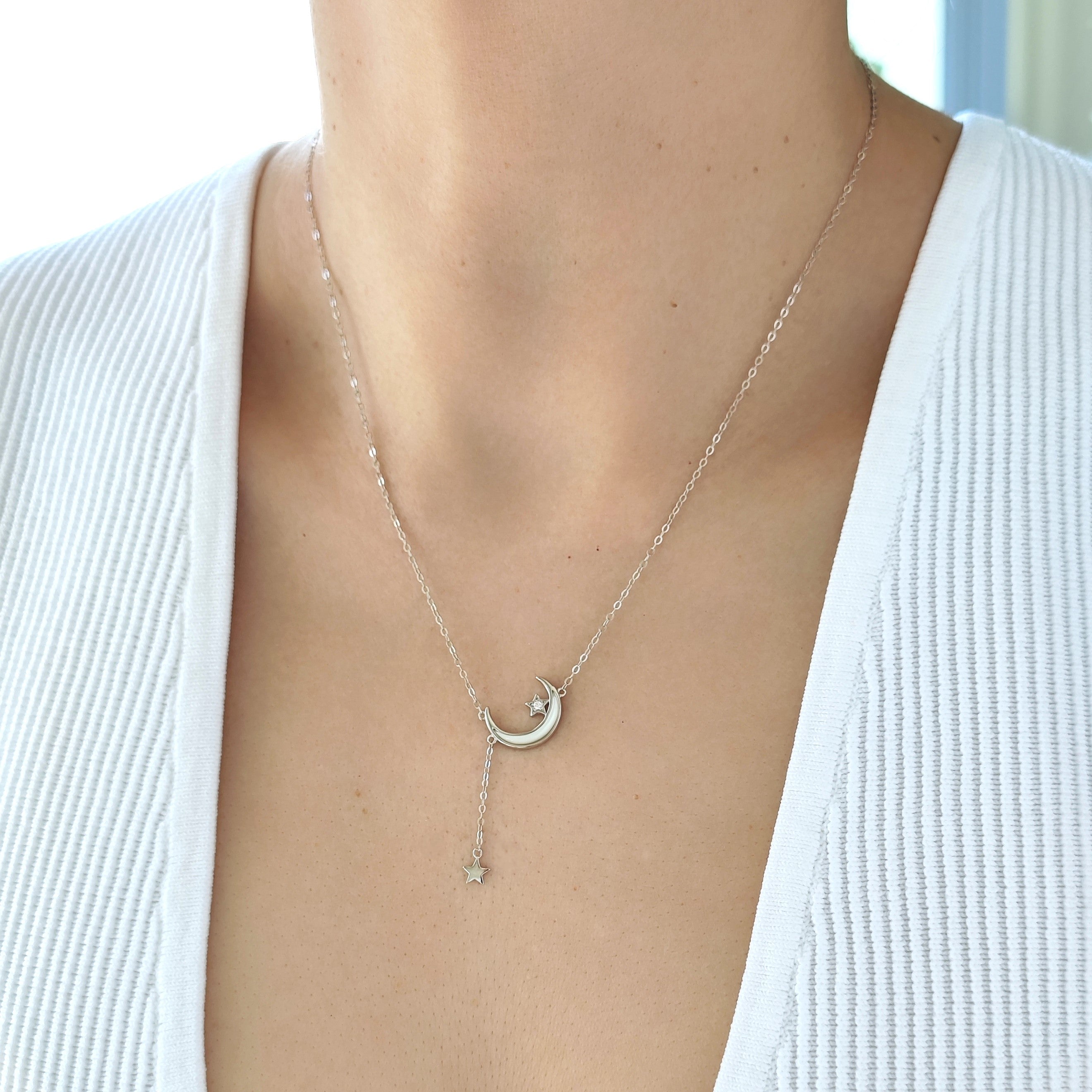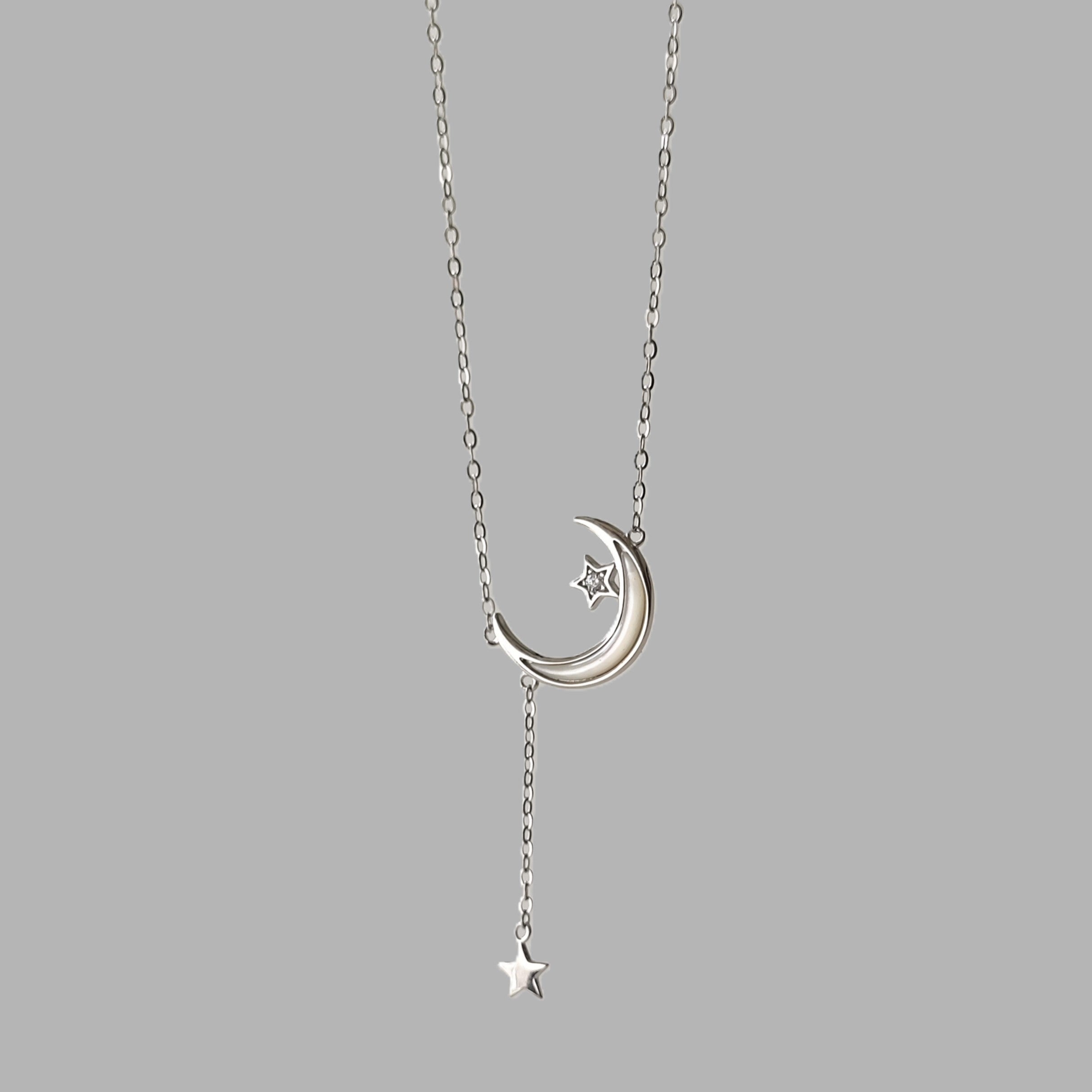 Sterling Silver Moon Dangling Star Necklace