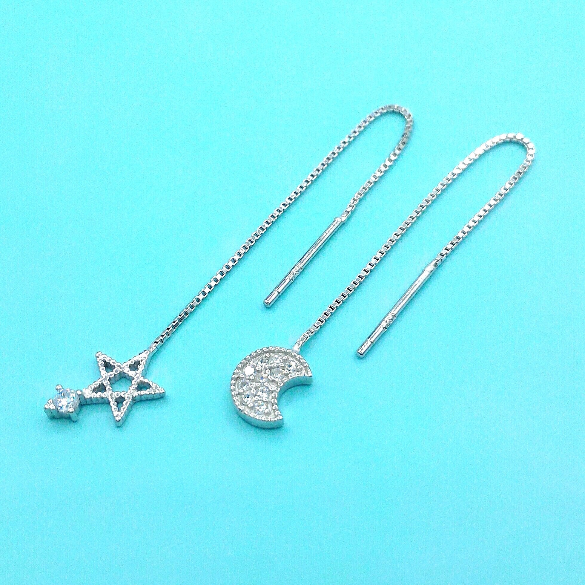 Sterling Silver Moon and Star Threader Earrings